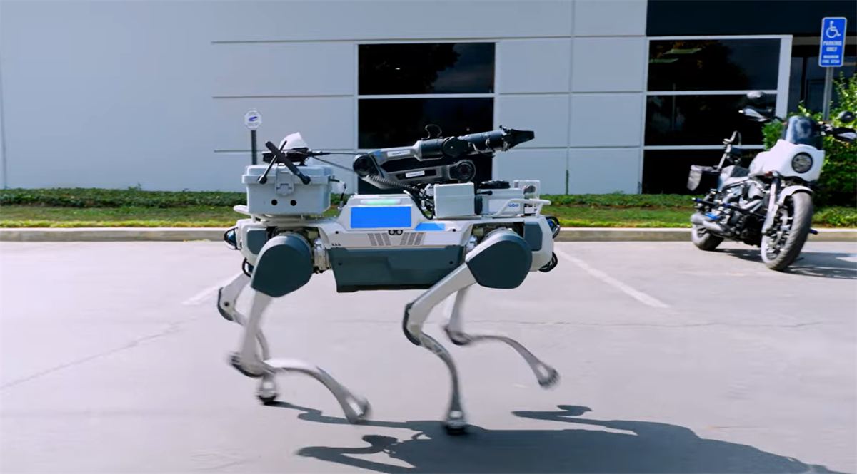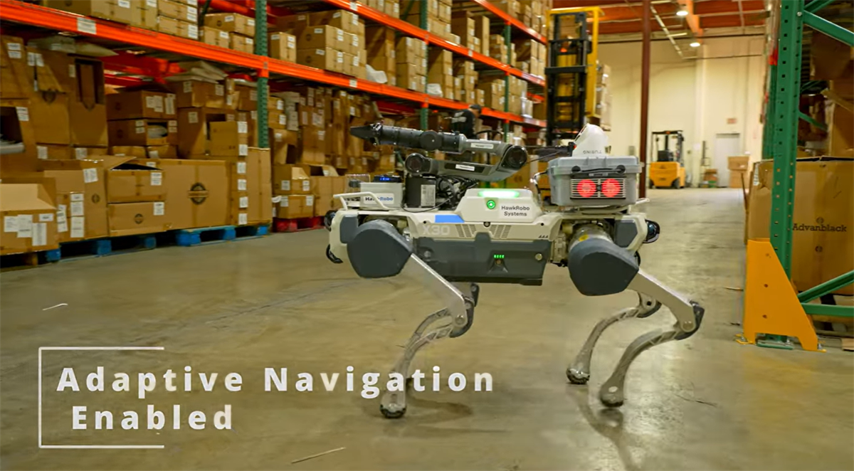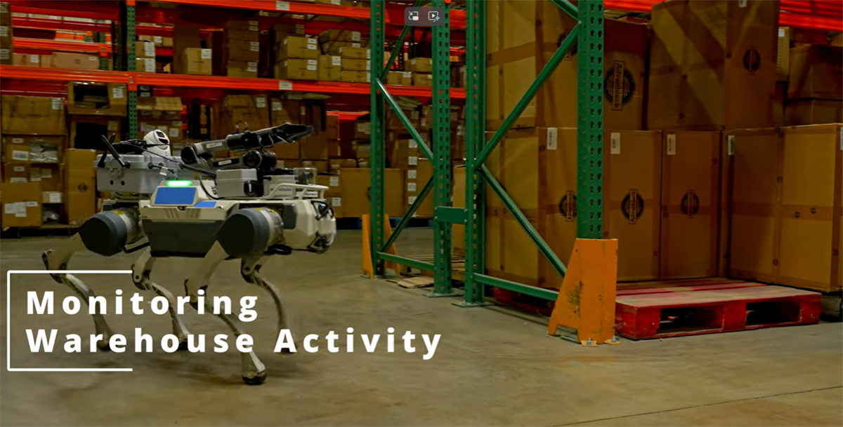 图为云深处四足机器人在仓储园区内巡检