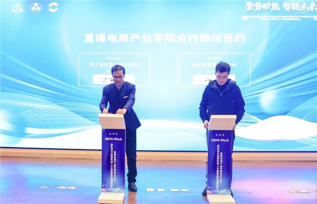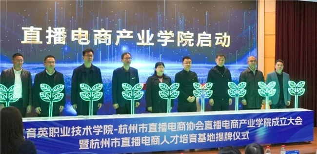 12月9日,浙江育英职业技术学院与杭州市直播电商协会携手共建的直播电商产业学院正式成立,杭州市直播电商人才培育基地同步揭牌。仪式在学校三号报告厅举行,标志着政、校、行、企多方合力深化产教融合,共同助力杭州“直播电商第一城”建设迈出坚实一步。
