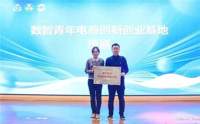 胡科强授予学院“数智青年电商创新创业基地”牌匾。